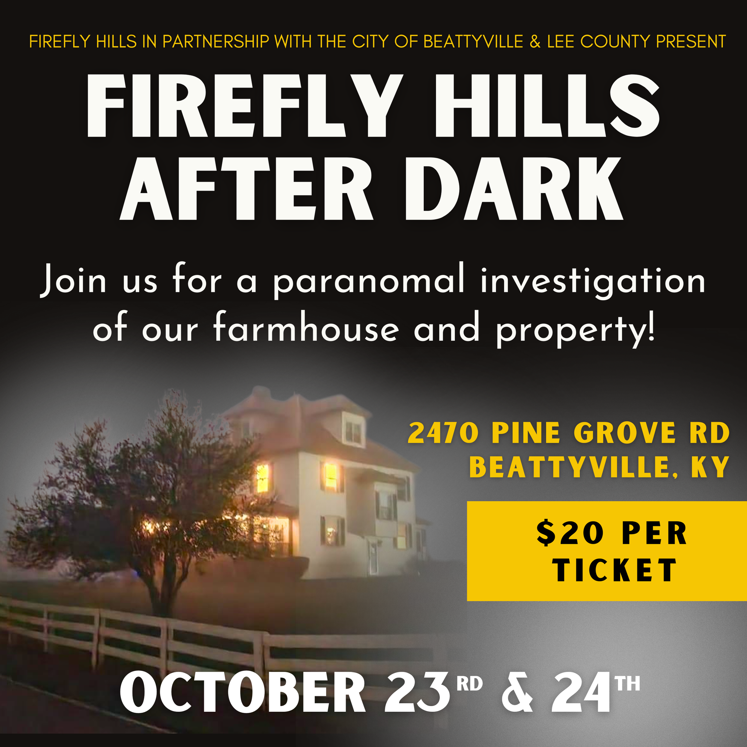 Join us on October 23 and 24, 2025 for an unforgettable evening in our early 1900s farmhouse—now fully renovated and welcoming guests as part of Firefly Hills. This special event invites you to learn how to use real paranormal investigation equipment while exploring a home long known in local folklore for unexplained activity.